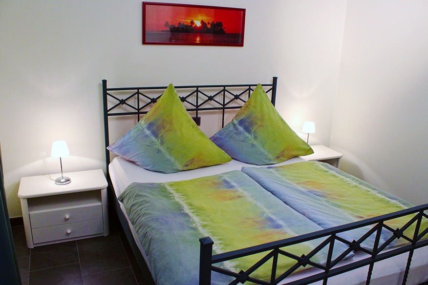 Im geräumigen Schlafzimmer mit Doppelbett finden Sie die Ruhe für einen tiefen und erholsamen Schlaf. Ihre Kleidung und auch das Gepäck lassen sich bequem im großen Kleiderschrank unterbringen.